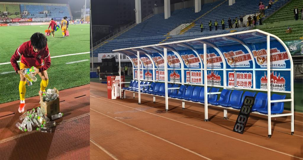 比赛结束后,“不留垃圾”在一些球迷、球队中蔚然成风。9月26日晚,记者在现场看到,大比分告负的张家界队员较为沮丧,但他们不忘清扫水瓶,留下整洁的替补席。